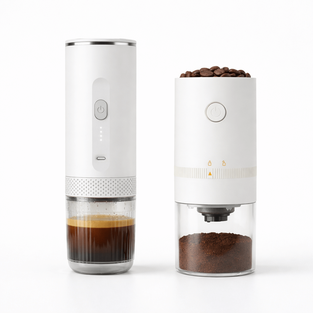Tragbare Espressomaschine mit Kaffeemühle Set – Mobiles Kaffee-Set für Reisen & Camping